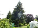 Übrig geblieben ist nur noch die Spitze von der Fichte und jede Menge Zapfen, welche auch noch zusammen geharkt werden müssen, um dann auch auf dem Komposthaufen zu gutem Humus verarbeitet zu werden.