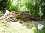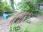 Das Ergebnis ist, dass der Holzstapel immer weiter wächst und der Komposthaufen langsam anfängt sich wieder zu füllen. Zwar ist gerade mal der Boden bedeckt, aber das wird sich schon schnell ändern.