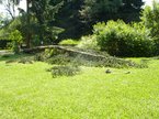 Da liegt sie nun die erste Fichte. Leider ist sie auf die Rose gefallen. Aber der Rose ist nicht viel passiert. Nur ein paar Zweige sind abgebrochen. Aber man sehen, dass nach dem abschneiden der Äste, auch die Triebe der Rose sich wieder aufgerichtet haben.
