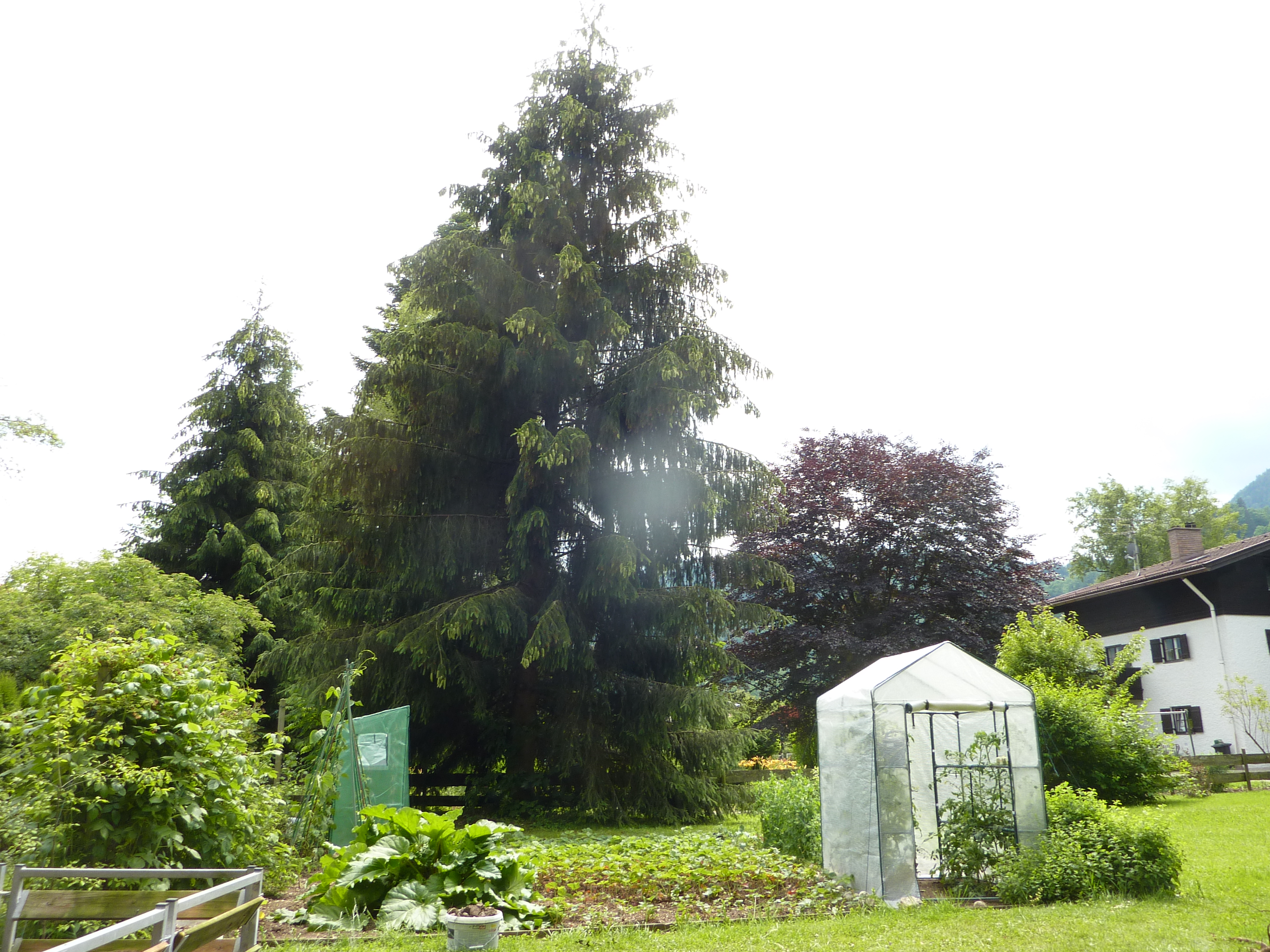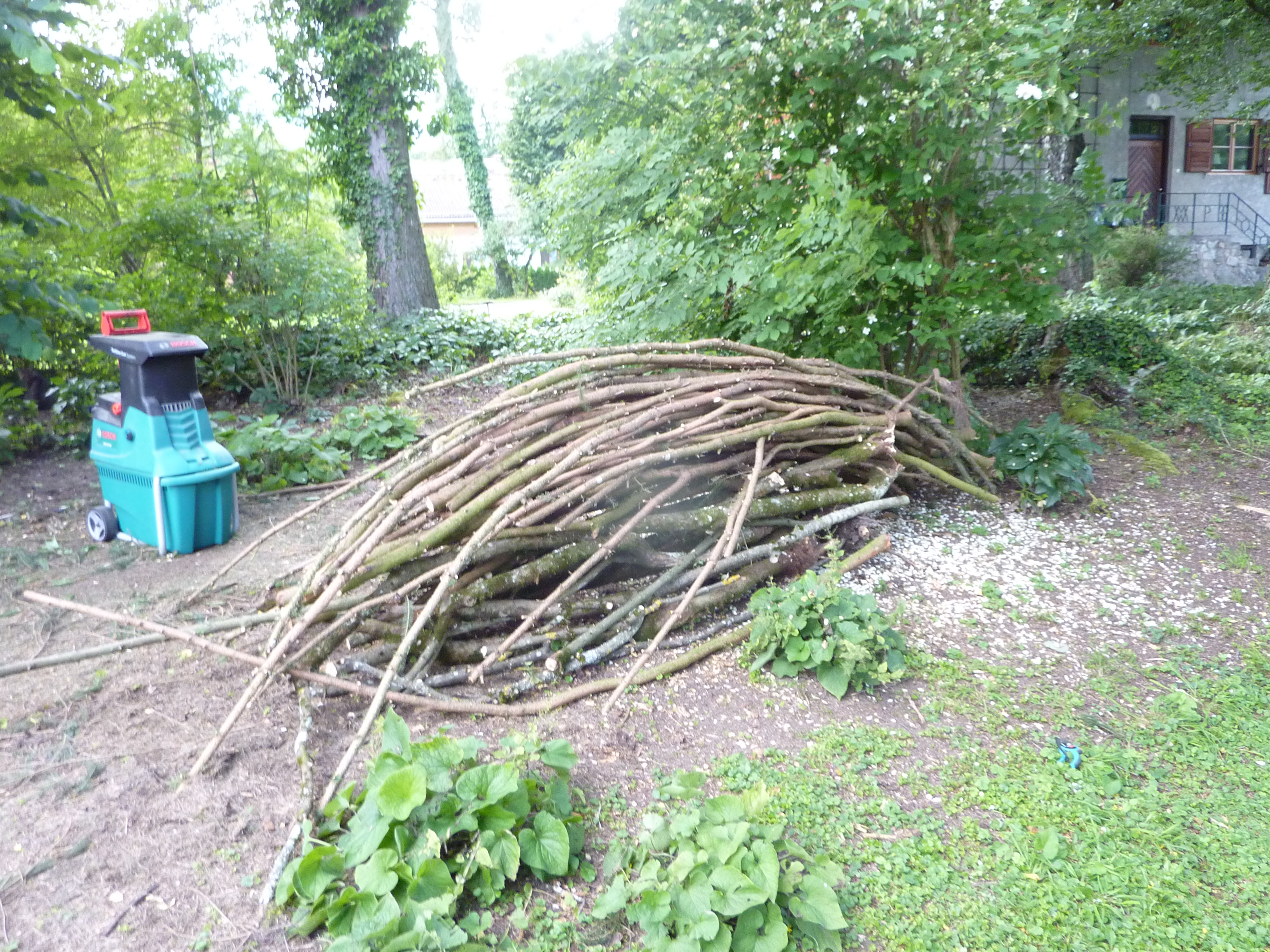 Auch der Kompost ist nun schon fast voll. Hätte nicht gedacht, dass er für die zwei Fichten ausreichen würde. Da hat sich der Häcksler richtig rentiert.